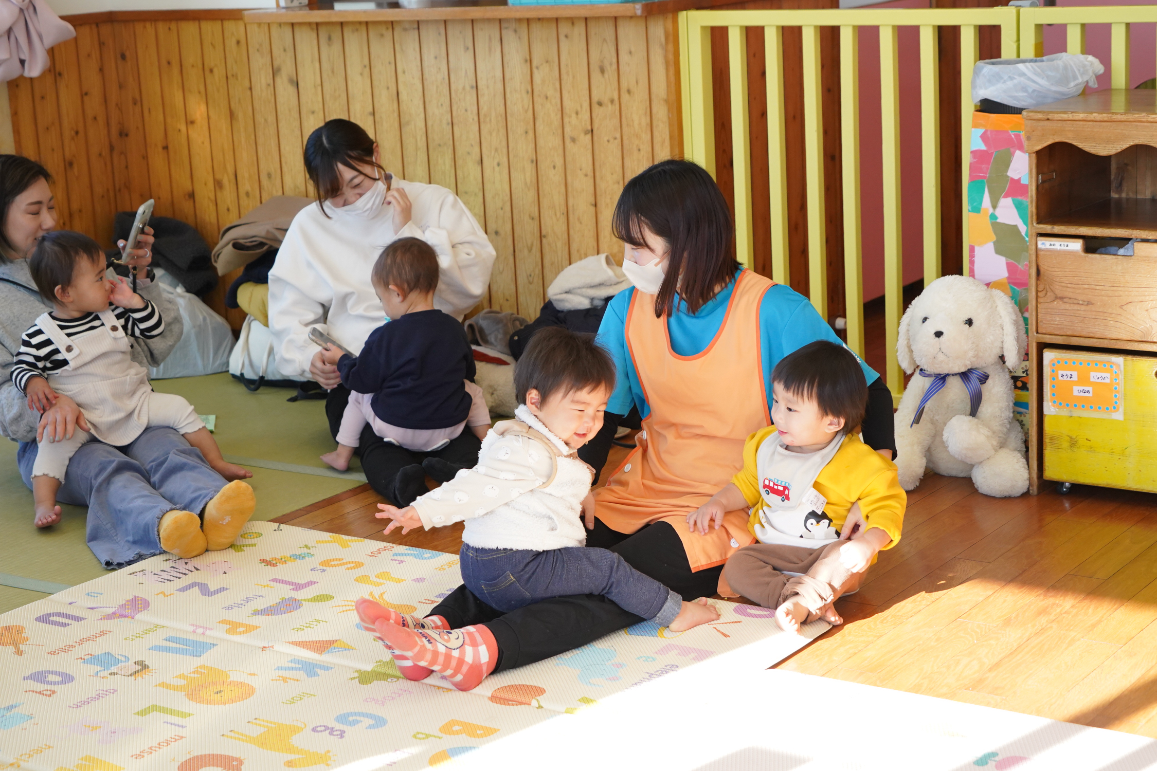 保育園にて、0・1・2歳児によるリズムあそび会が開催されました。